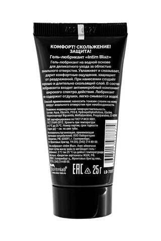 Нежный анальный гель-лубрикант на водной основе Intim Bluz отлично подойдёт начинающим парам. Специальные компоненты, входящие в его состав, снимают болевые ощущения, обеспечивая безболезненное проникновение. Лубрикант бережно ухаживает и увлажняет кожу, обеспечивает лёгкое и длительное скольжение, защищает от инфицирования. Совместим с секс-игрушками из любых материалов и презервативами.