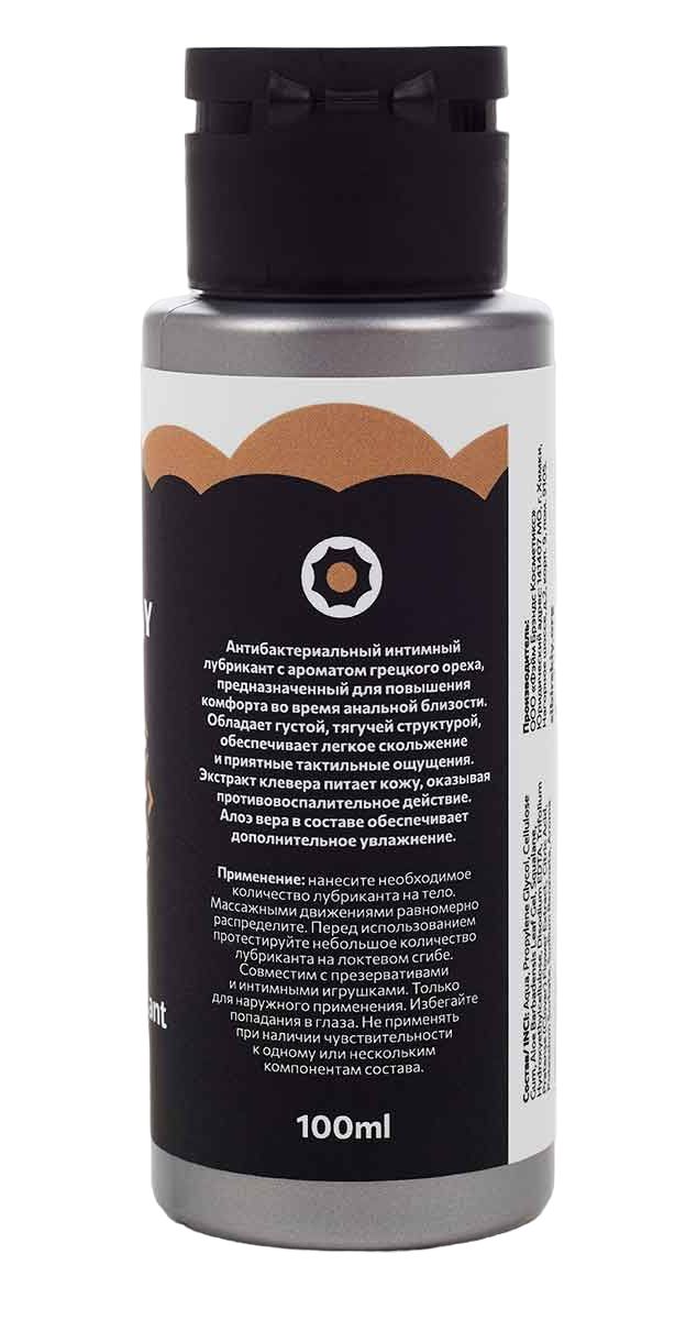 Антибактериальный интимный лубрикант с ароматом грецкого ореха, предназначенный для повышения комфорта во время анальной близости. Обладает густой, тягучей структурой, обеспечивает легкое скольжение и приятные тактильные ощущения. Экстракт клевера питает кожу, оказывая противовоспалительное действие. Алоэ вера в составе обеспечивает дополнительное увлажнение. Совместим с презервативами и интимными игрушками.