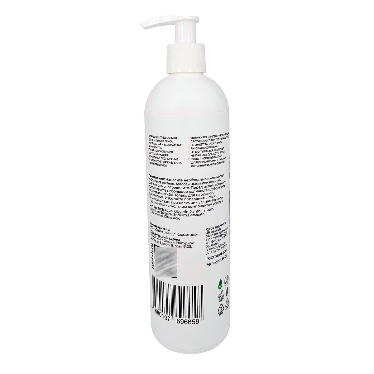 Интимный лубрикант с натуральной и безопасной ЭКО-формулой разработан специально для анального секса. Обладает густой консистенцией, обеспечивающей длительное скольжение. Прозрачный гель абсолютно не имеет запаха и вкуса, способствует заживлению микро-трещинок, благодаря входящему в состав D-пантенолу. Увлажняет и регенерирует, обладает противовоспалительным эффектом. Не скатывается, не липнет, не пачкает одежду и белье, PH-сбалансирован. Может использоваться с презервативами и любыми интимными аксессуарами.