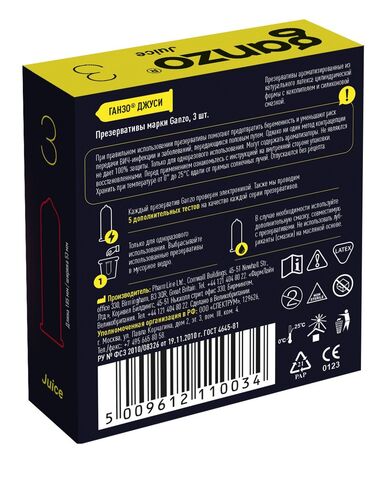 Ganzo – презервативный бренд родом из Великобритании, сочетающие в себе качество и доступную стоимость. Все презервативы проходят через 5-ступенчатую систему тестирования электроникой. Натуральный латекс премиального качества и гипоаллергенная смазка на силиконовой основе в составе обеспечат гладкое скольжение во время фрикций. Обязательная сертификация подтверждает качество и безопасность продукции Ganzo. Толщина стенки - 0,06 мм.