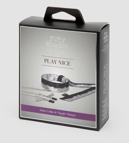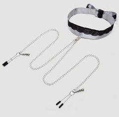 Атласный ошейник с зажимами для сосков Play Nice