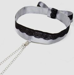 Переливающийся серебристый атласный ошейник с нежной черной кружевной отделкой и регулируемыми зажимами для сосков. Комфортно ощущается даже на самой нежной коже. Зажимы регулируются. Высокий комфорт при длительном ношении