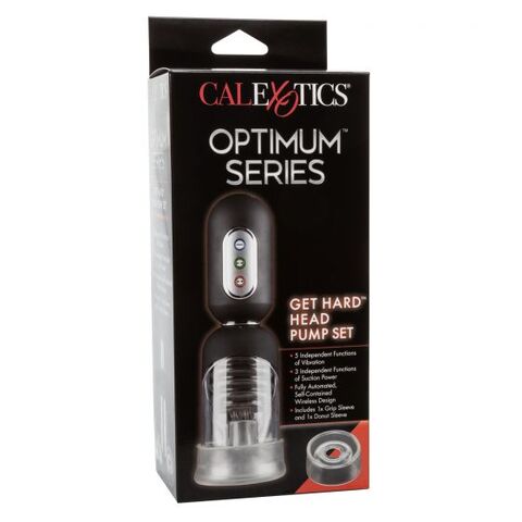Optimum Series Get Hard Head Pump Set – высокотехничное специализированное автоматическое устройство для не инвазивного метода профилактики эректильной дисфункции. Помпа снабжена 3 уровнями интенсивного всасывания и 5 независимыми функциями вибрации. Прибор разработан с учетом анатомического строения полового члена мужчины.