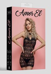 Эротическое мини-платье с ажурным воротником. Оно имеет очень сексуальный ромбообразный рисунок. Благодаря использованию большего количества нейлона, белье сохраняет очертания, не деформируется, растягивается и выгодно облегает фигуру. Трусики не входят в комплект!