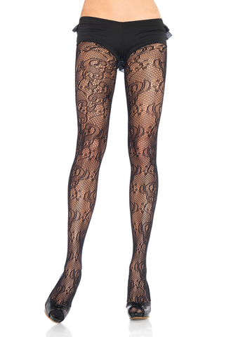 Черные колготки из эластичного кружева с цветочными мотивами подчеркнут вашу сексуальность.