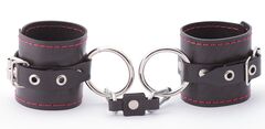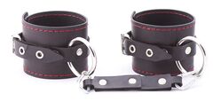 БДСМ-комплект: ошейник, распорка, наручники и оковы.Три точки фиксации. Шесть карабинов, кольцо, поводок. Выполнен из натуральной кожи. Длина распорки - 50 см.
