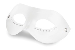 Маска на глаза, изготовленная кожи, декорированная стразами в тон. Имеет завязки в виде атласных лент. Длина - 17,5 см.