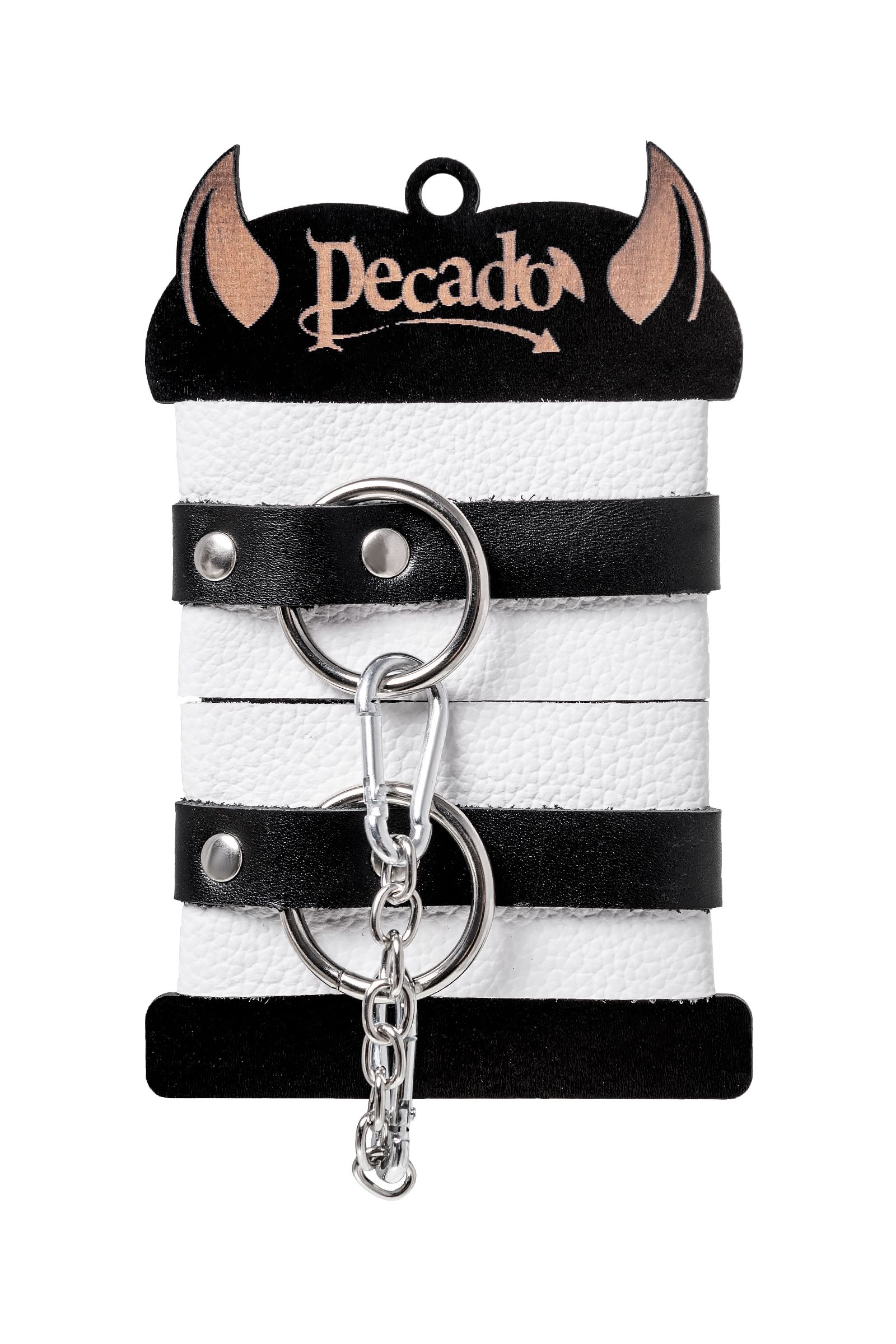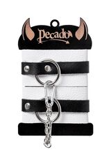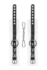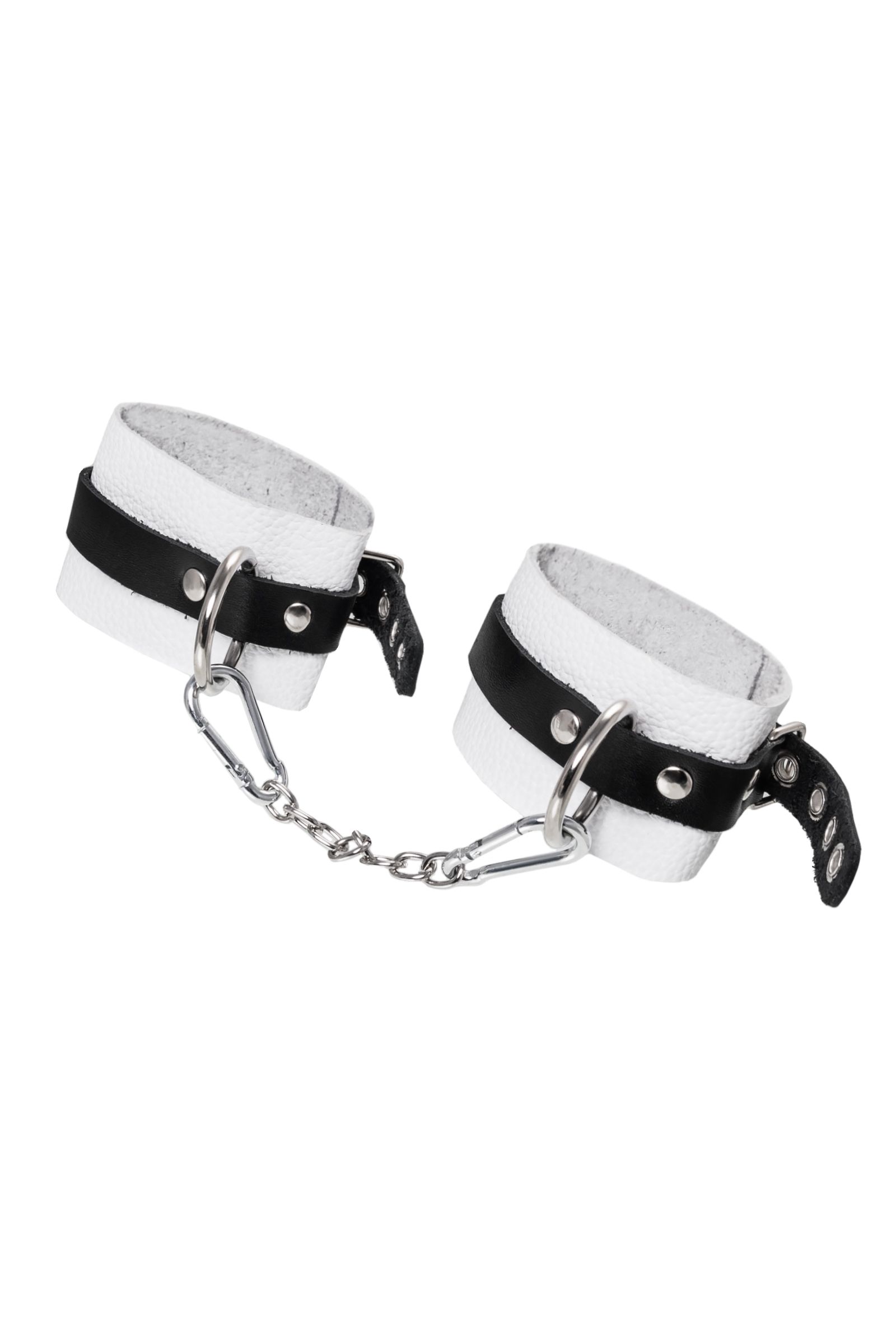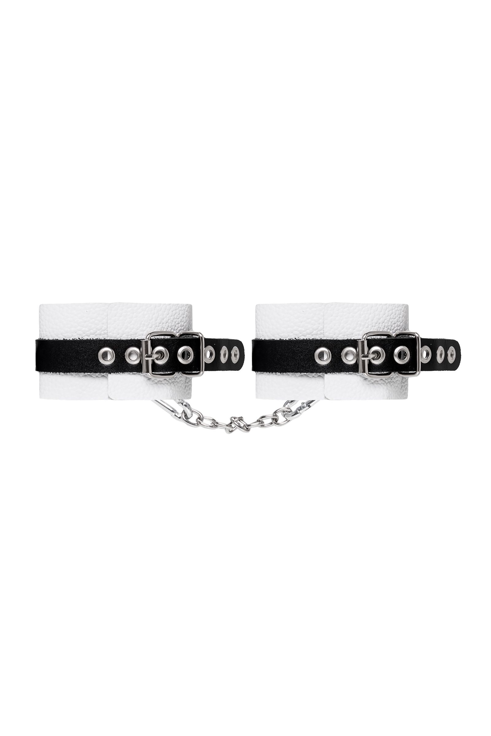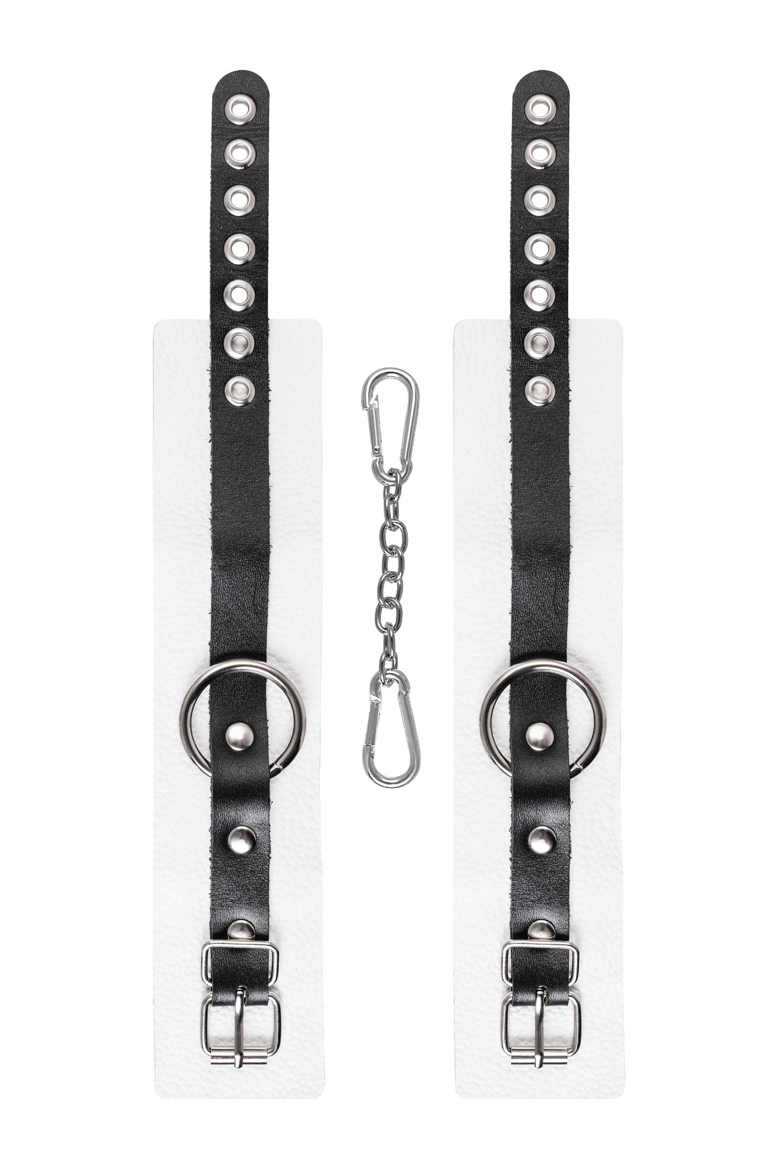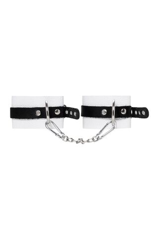 Мягкие оковы с жёсткими ремешками от Pecado помогут обездвижить партнера во время сексуальных прелюдий или жестких БДСМ-играх. Наручники изготовлены полностью из белой, натуральной кожи. Ремешки выполнены из чёрной жёсткой кожи, украшены люверсами. Выделка материала произведена вручную. Ремешки и широкая манжета хорошо держат форму: не тянутся и не мнутся. Качественная металлическая фурнитура добавляет лоска изделию, а аромат натуральной кожи повышает градус возбуждения. Благодаря широкому запасу регулировок, можно подобрать необходимый обхват. Аксессуар удобно застегивать и легко расстегивать. При правильном использовании не оставляет следов на теле и не доставляет дискомфорта. Манжеты оков соединяется между собой помощью двух карабинов и съемной стальной цепочки. Подходит и для женских, и для мужских ног. Длина манжет - 25 см, ширина - 5,5 см.