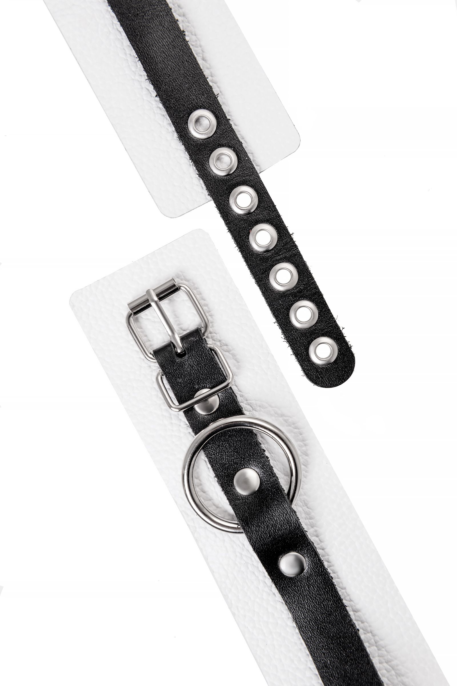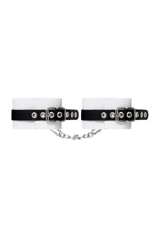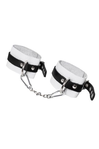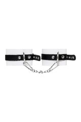 Бело-черные мягкие оковы с одним ремешком и люверсами