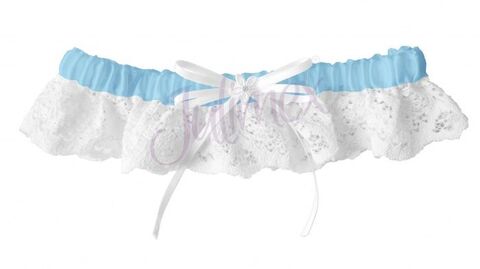 Подвязка на ногу, для ролевых игр, арт. PW-85 Victoria из белого кружева на голубой резинке. Идеальный вариант для невесты.