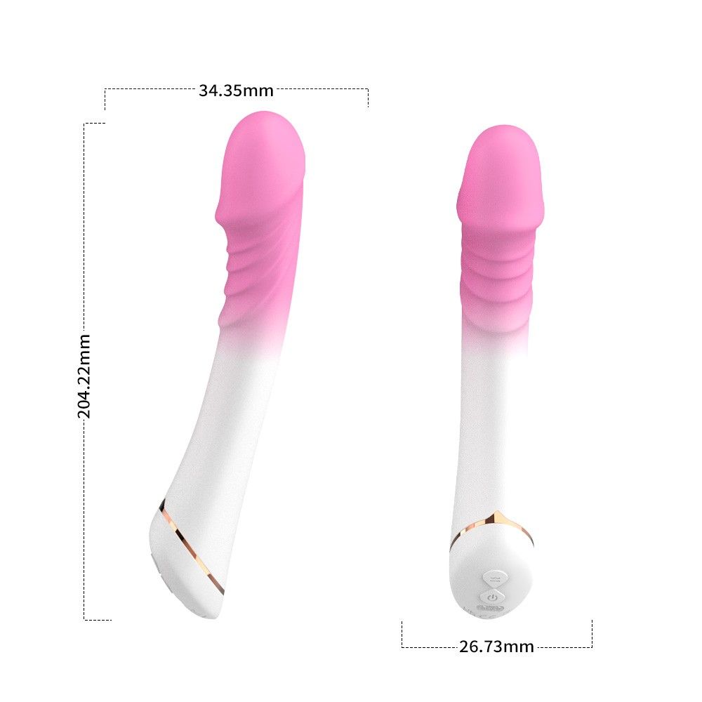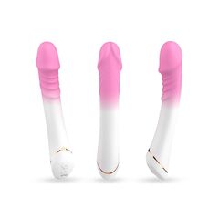 Бело-розовый вибромассажер с крупной головкой - 20,4 см.