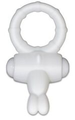 Белое виброкольцо для пениса Power Rabbit Clit Cockring. Клиторальный стимулятор выполнен в виде заячьих ушек. 1 режим усиленной вибрации. Батарейки в комплекте (2 х LR41).