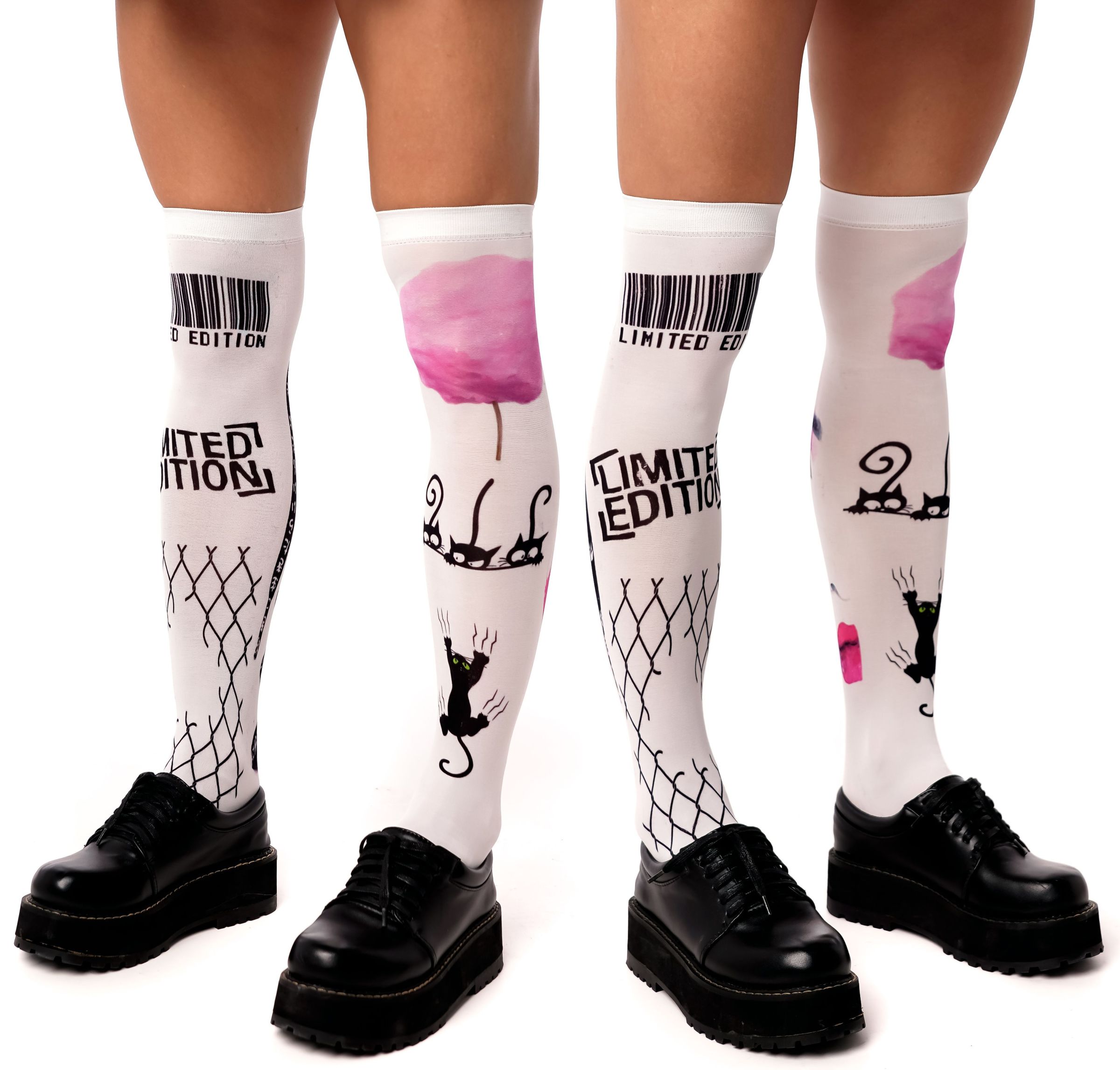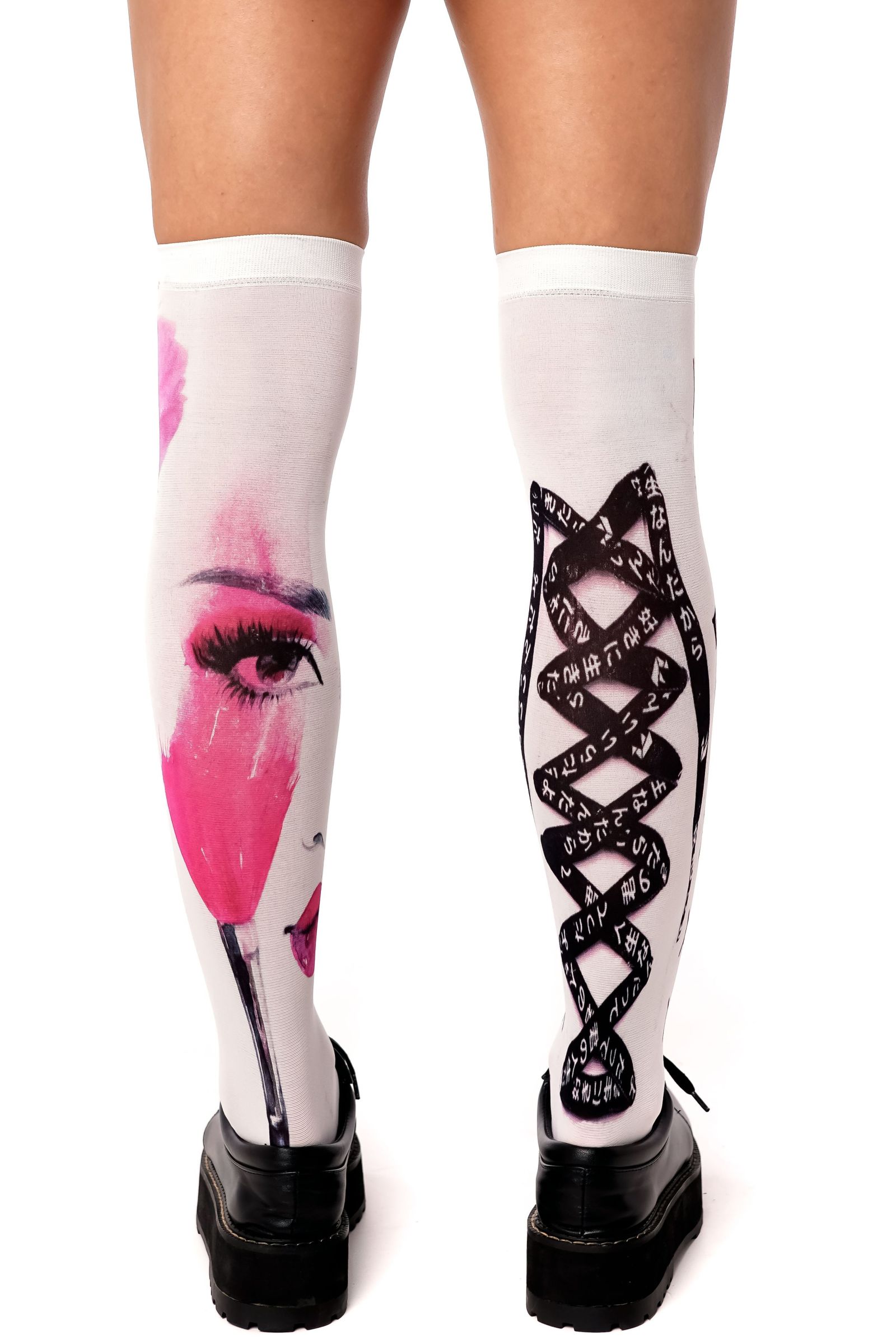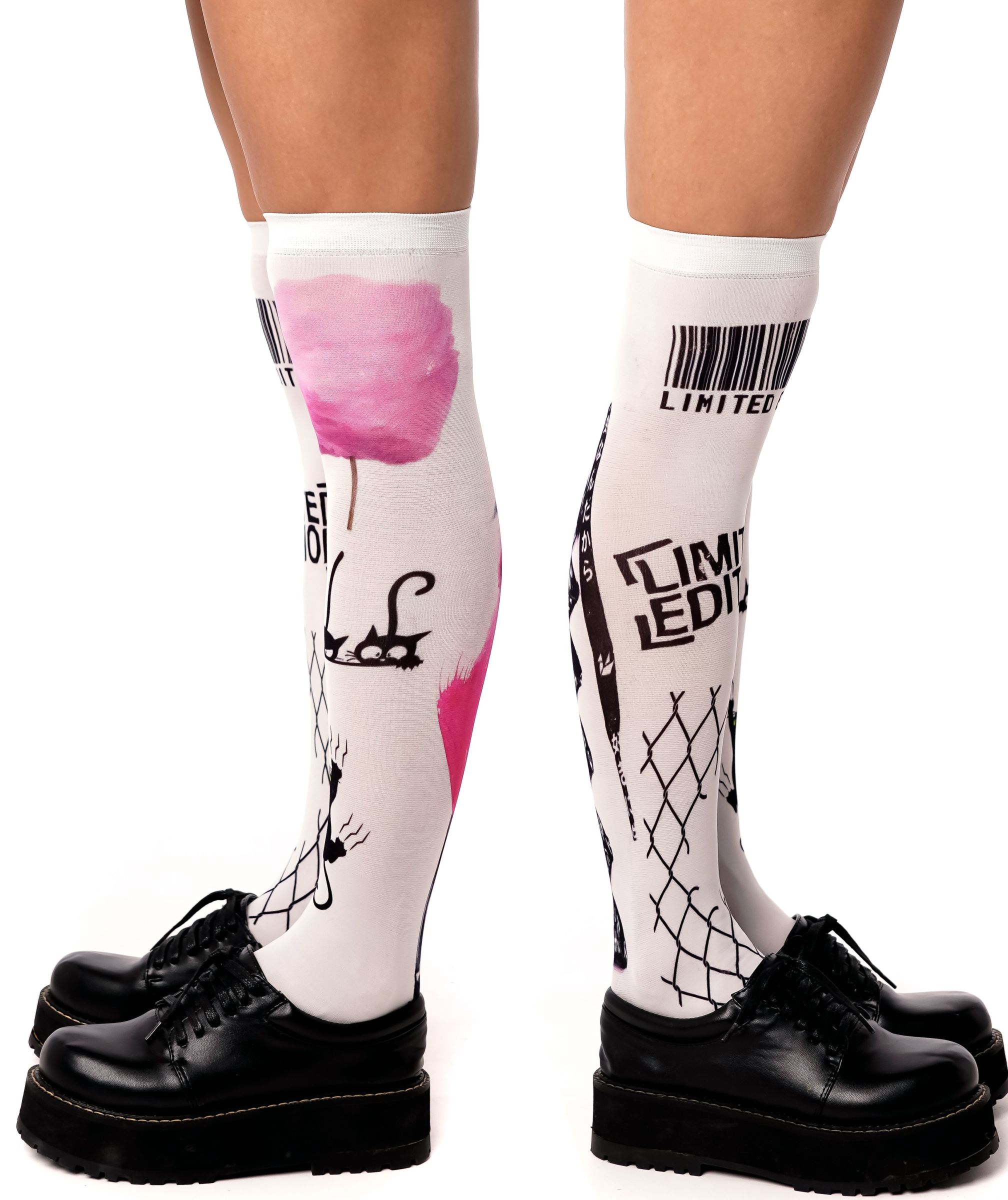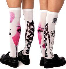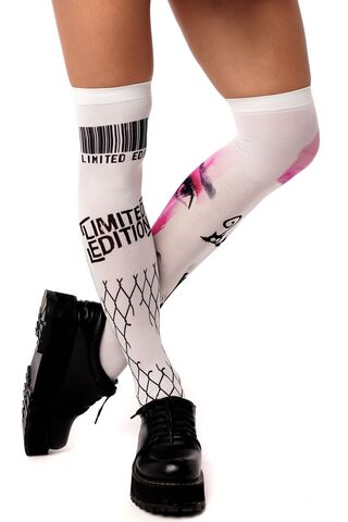 Белые гольфы с черно-розовым принтом
