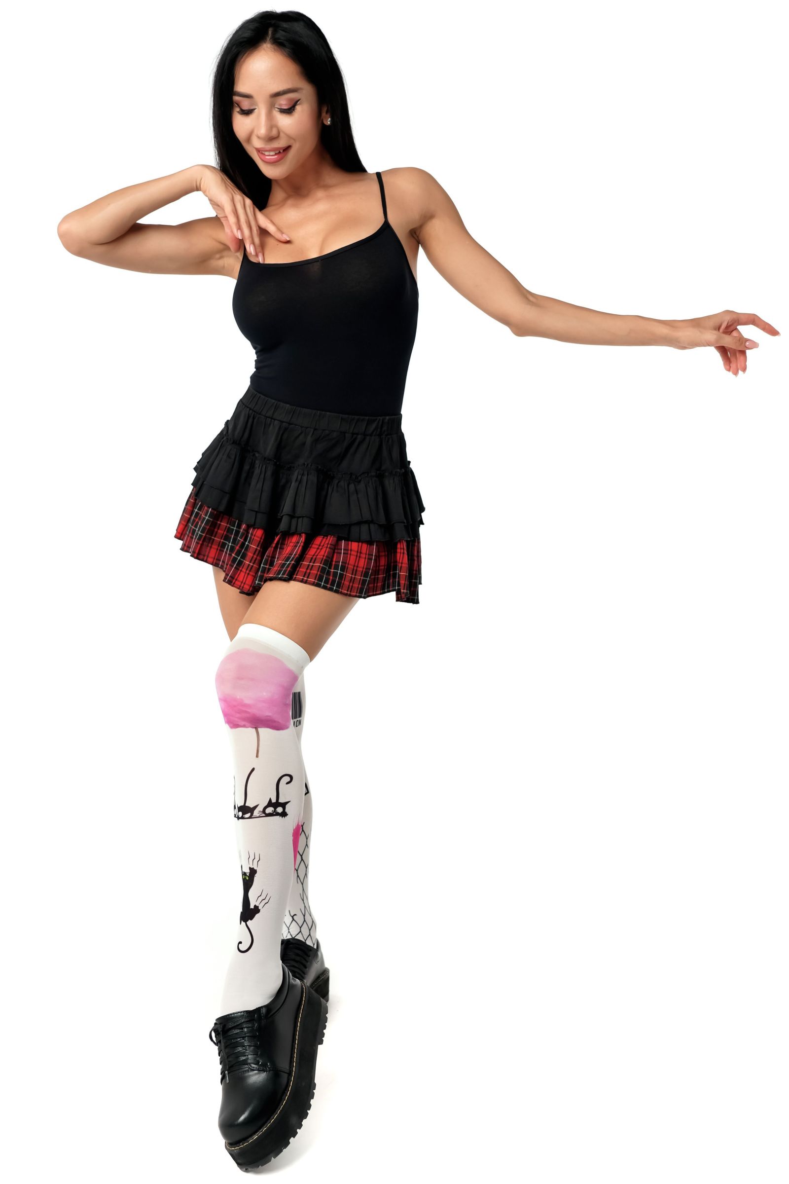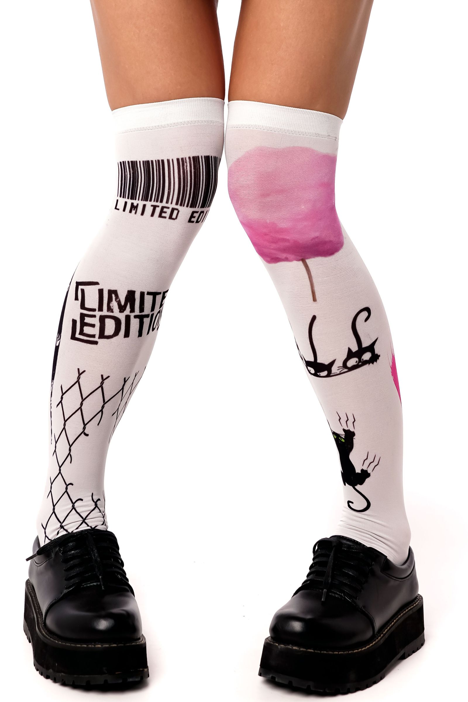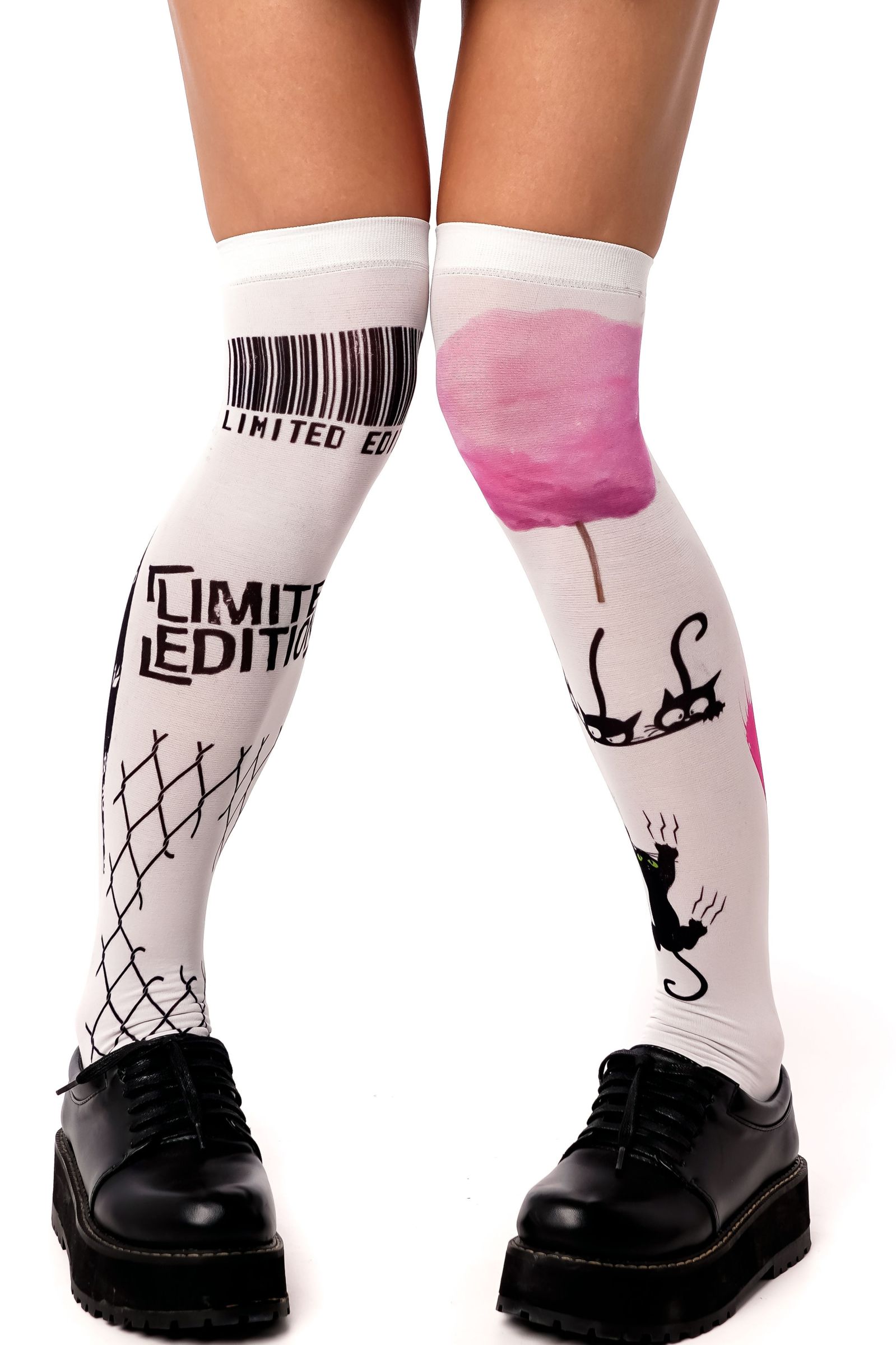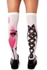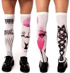 Белые гольфы с черно-розовым принтом