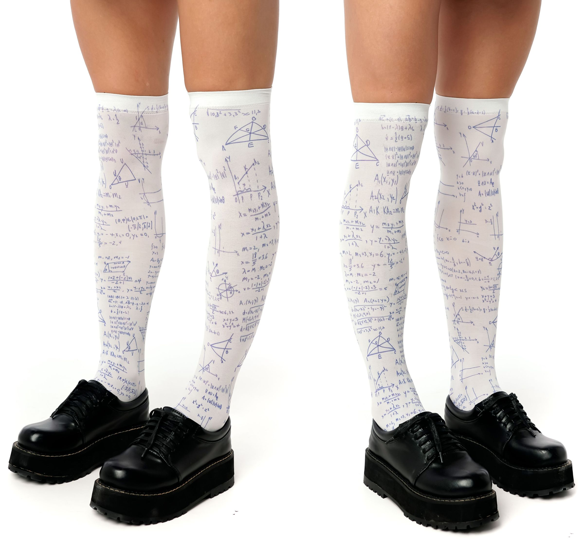 Белые гольфы с принтом в виде формул, вычислений и схем