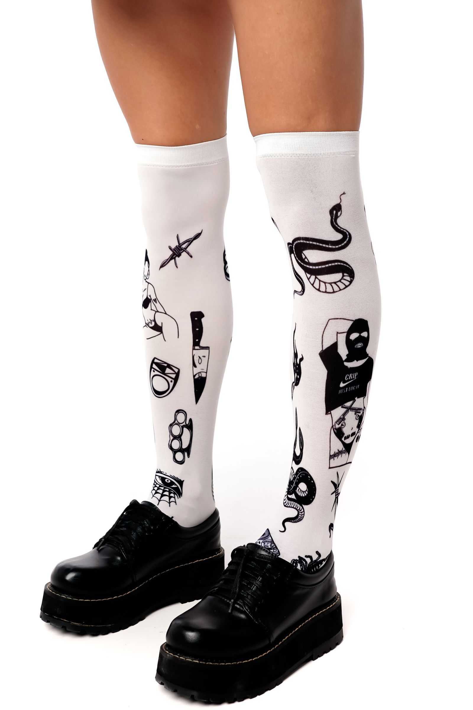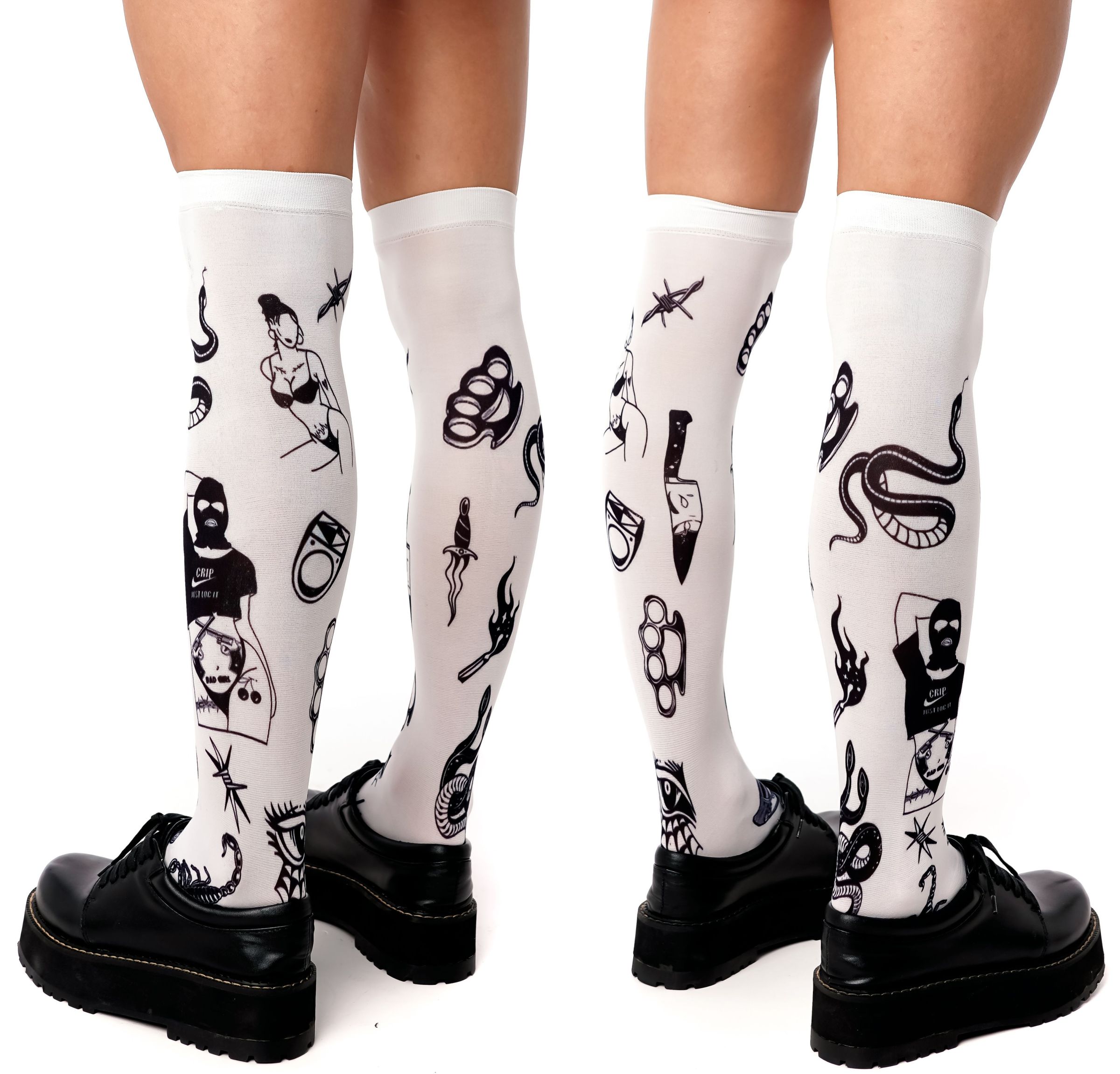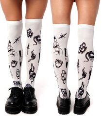 Белые гольфы с принтом в виде тату