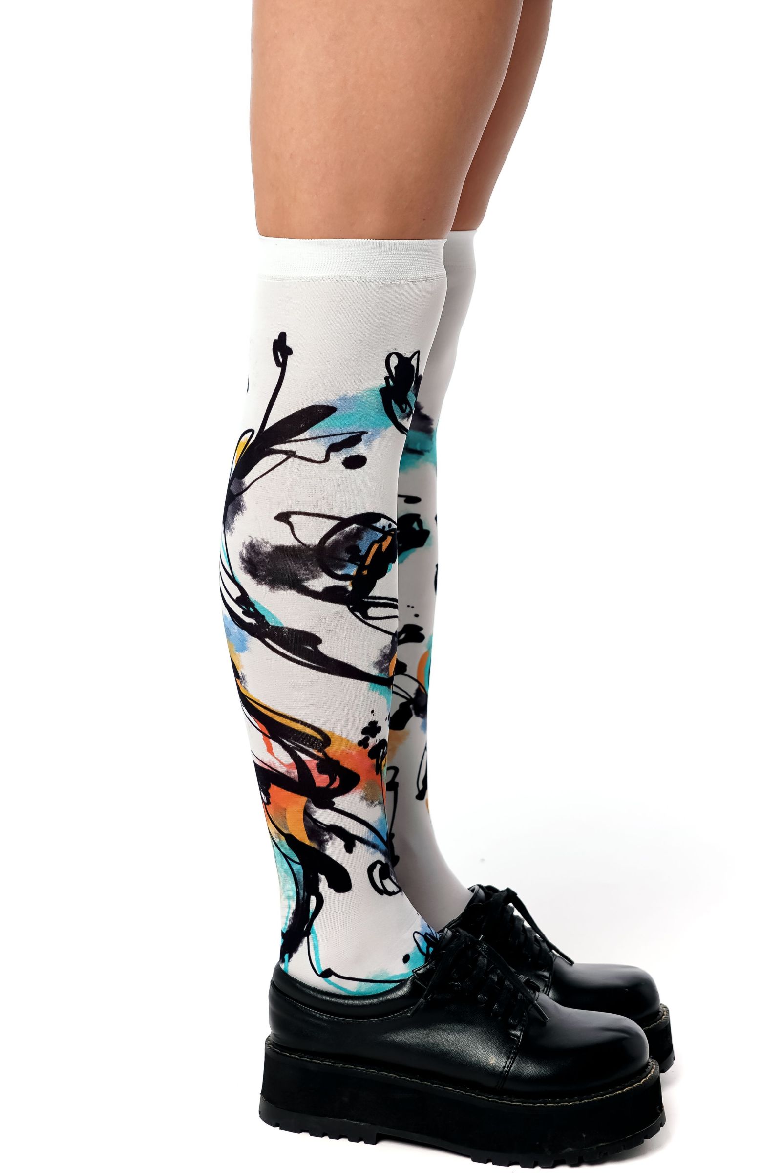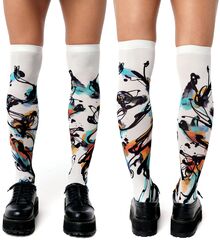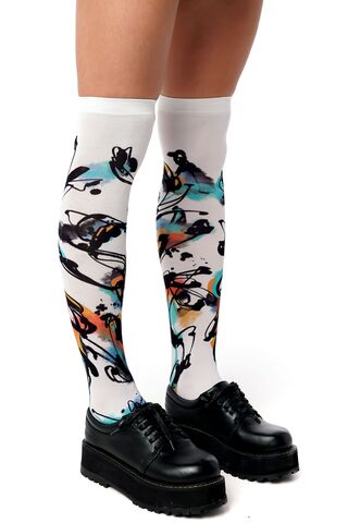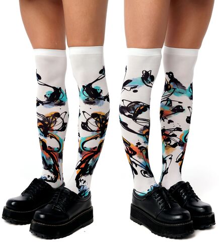 Белые гольфы с принтом в виде цветных всполохов