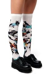 Гольфы женские с принтом. Принт не стирается, не выгорает со временем. Можно стирать в стиральной машине. Крепкие, подойдут на любой размер