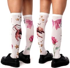 Гольфы женские с принтом. Принт не стирается, не выгорает со временем. Можно стирать в стиральной машине. Крепкие, подойдут на любой размер