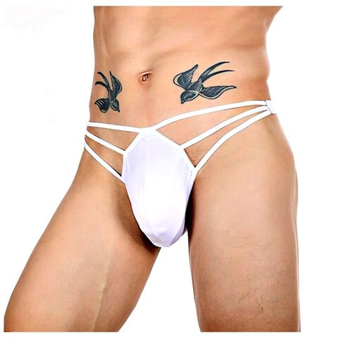 Белые сексуальные трусы-стринги на тонких бретелях.