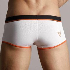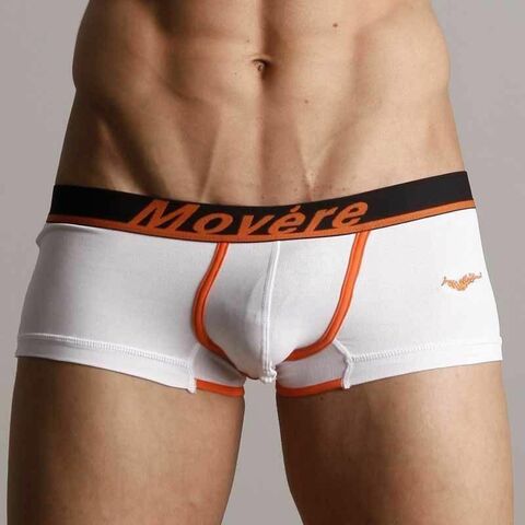 Белые трусы-хипсы с черной резинкой и надписью Movere.