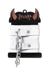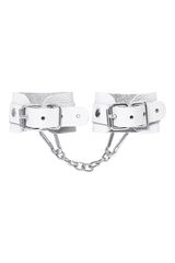 Ищите наручники для миниатюрной ручки? Тогда обратите внимание на эту модель от российского производителя Pecado. Они идеально созданы для обладательниц узкого запястья. Каждый элемент аксессуара изготовлен полностью вручную. Мягкий, белый материал нежно обхватывает руку и оставляет только приятные ощущения от контакта с телом. Аксессуар декорирован качественной фурнитурой, благодаря которой, при необходимости, его легко снять. Соединяются между собой с помощью короткой стальной цепочки и двух колец с карабинами. При правильном использовании не оставляют следов на теле. А особый аромат натуральной кожи придает пикантности сексуальному атрибуту. Длина манжет – 15 см, ширина – 4 см.