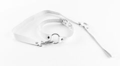 Элегантный чокер с поводком, выполненный из натуральной кожи белого цвета. Аксессуар декорирован двумя металлическими кольцами. Длина чокера удобно регулируется на обхват шеи от 30 до 40 см. Длина поводка - 60 см.