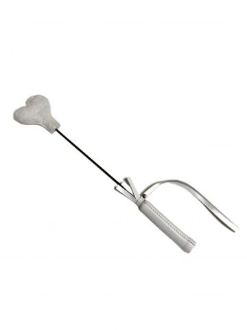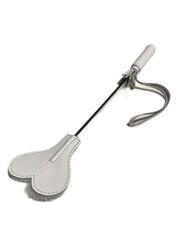 Миниатюрный и очень симпатичный стек из натуральной белой кожи, на конце которого расположен шлепок в виде сердечка. Одна сторона шлепка выполнена из натуральной кожи, а другая из нежнейшего белого эко-меха, невероятно приятного на ощупь. Такой дизайн позволит чередовать возбуждающие шлепки кожаной стороной и нежные поглаживания меховой стороной. Для удобства на рукоятке имеется петелька. Этот маленький, но гибкий и яркий стек добавит незабываемых эмоций и ощущений в любовную игру! Длина рукояти - 9 см.
