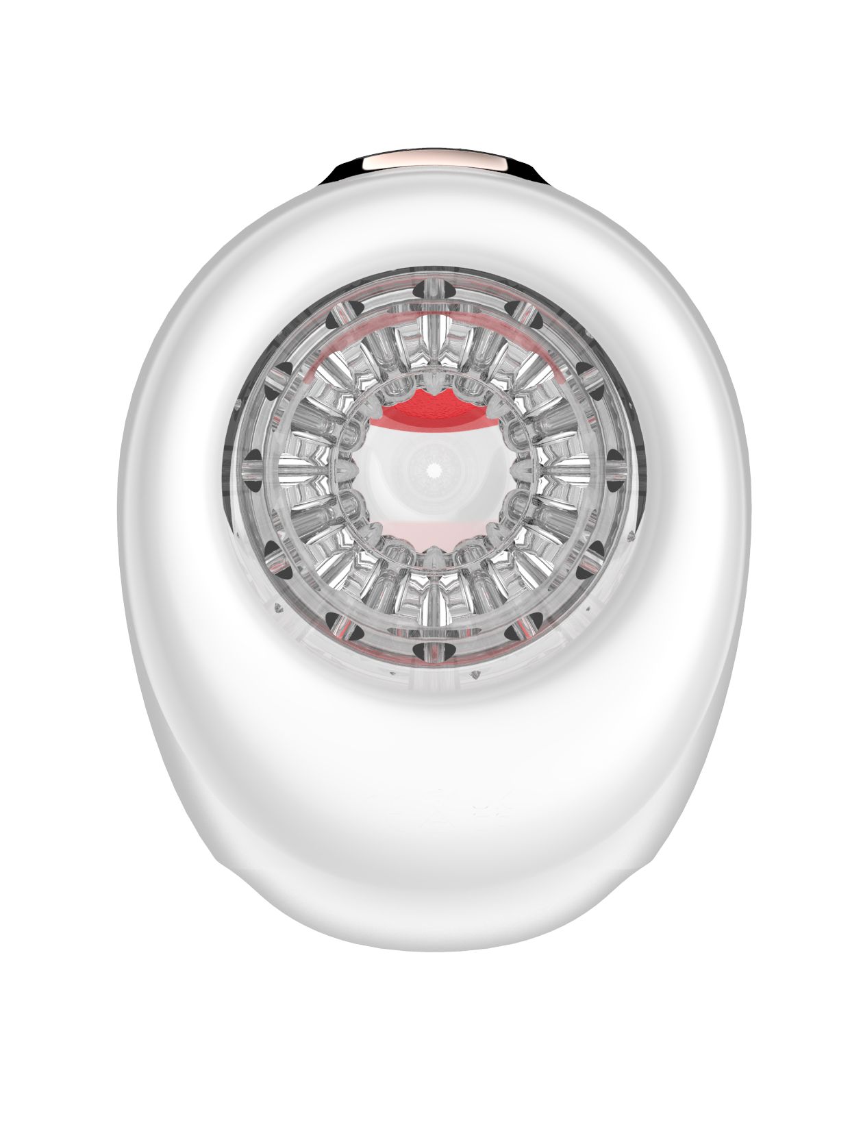 Белый мастурбатор с язычком и возвратно-поступательными движениями. Мягкий и эластичный язычок приласкает головку полового члена. 10 режимов фрикций позволят выбрать ритм по настроению.