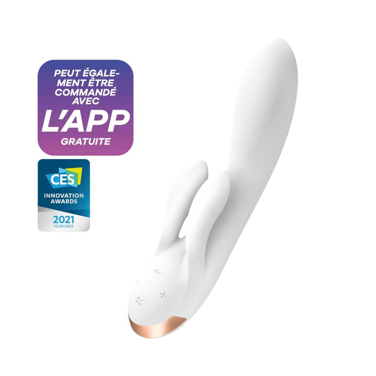 Вибратор-кролик Satisfyer Double Flex с двумя клиторальными отростками имеет 3 мощных двигателя, изготовлен из приятного для тела высококачественного цельного силикона, имеет чрезвычайную гибкость и идеально повторяет изгибы тела благодаря технологии Silikon Flex.
