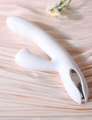 Белый вибратор-кролик Eria с вакуумной стимуляцией, функцией tapping и нагревом - 21,5 см.