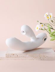 Eria — это стимулятор, который сочетает 10 мощных режимов вакуумной стимуляции и 5 режимов вибрации с постукиванием для одновременной стимуляции клитора и точки G. Благодаря эргономичному дизайну, устройство легко адаптируется под разную анатомию, а функция нагрева до 43°C добавляет реалистичности к ощущениям.