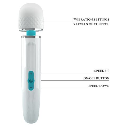 Этот очаровательный массажер оснащен сверхмощным мотором для интенсивных вибраций. С его округлой головкой, массажер можно использовать для самых разных целей. Этот массажер имеет 5 уровней скорости и 7 режимов вибрации, которые легко управляются с помощью кнопок на ручке. Подарите себе мощные вибрации!
