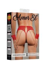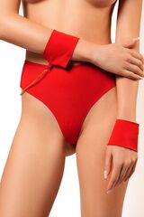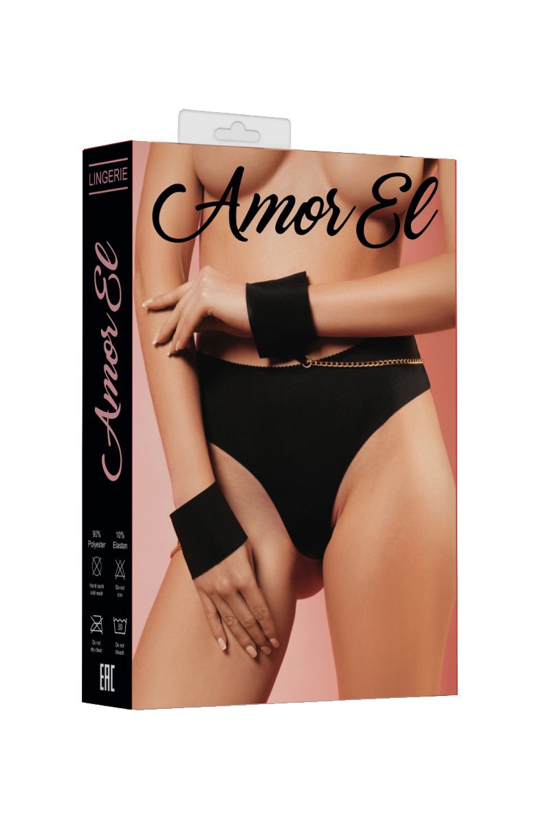 Бесшовные трусики-танга с наручниками на цепочках. Трусики имеют соблазнительный вырез на ягодицах и кольцо, соединяющее трусики с цепочкой и наручниками