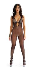 Бесшовный комбинезон-сетка с глубоким декольте.