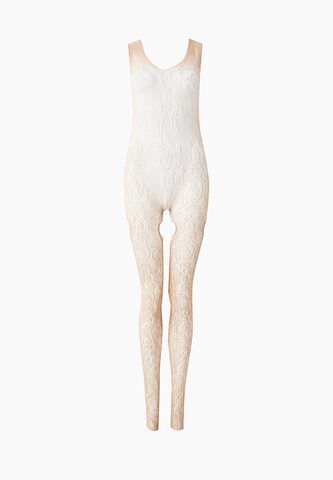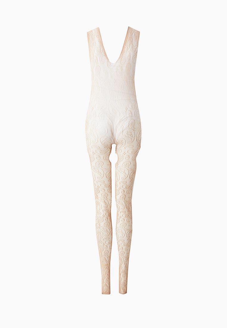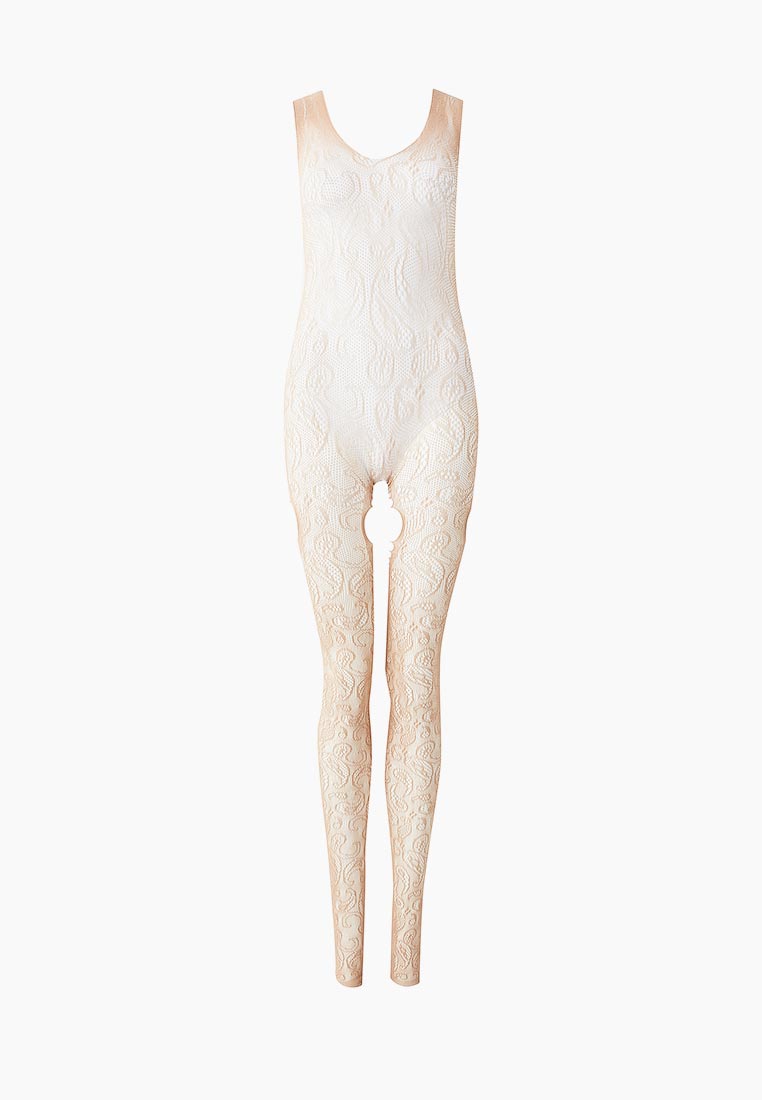 Бежевый ажурный комбинезон с разрезами на бедрах. C интимным доступом. Нежный, приятный на ощупь материал позволит вам чувствовать себя комфортно, а уникальный дизайн модели не даст отвести от вас взгляд. Благодаря уникальному пошиву и дизайну боди-комбинезон визуально стройнит фигуру, а также подчеркивает все самые аппетитные части тела.