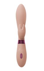Бежевый вибратор Leyla с клиторальным отростком - 20,5 см.