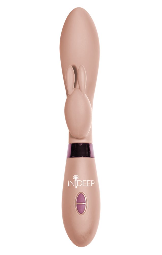 Бежевый вибратор Yonce с клиторальным зайчиком - 20,5 см.