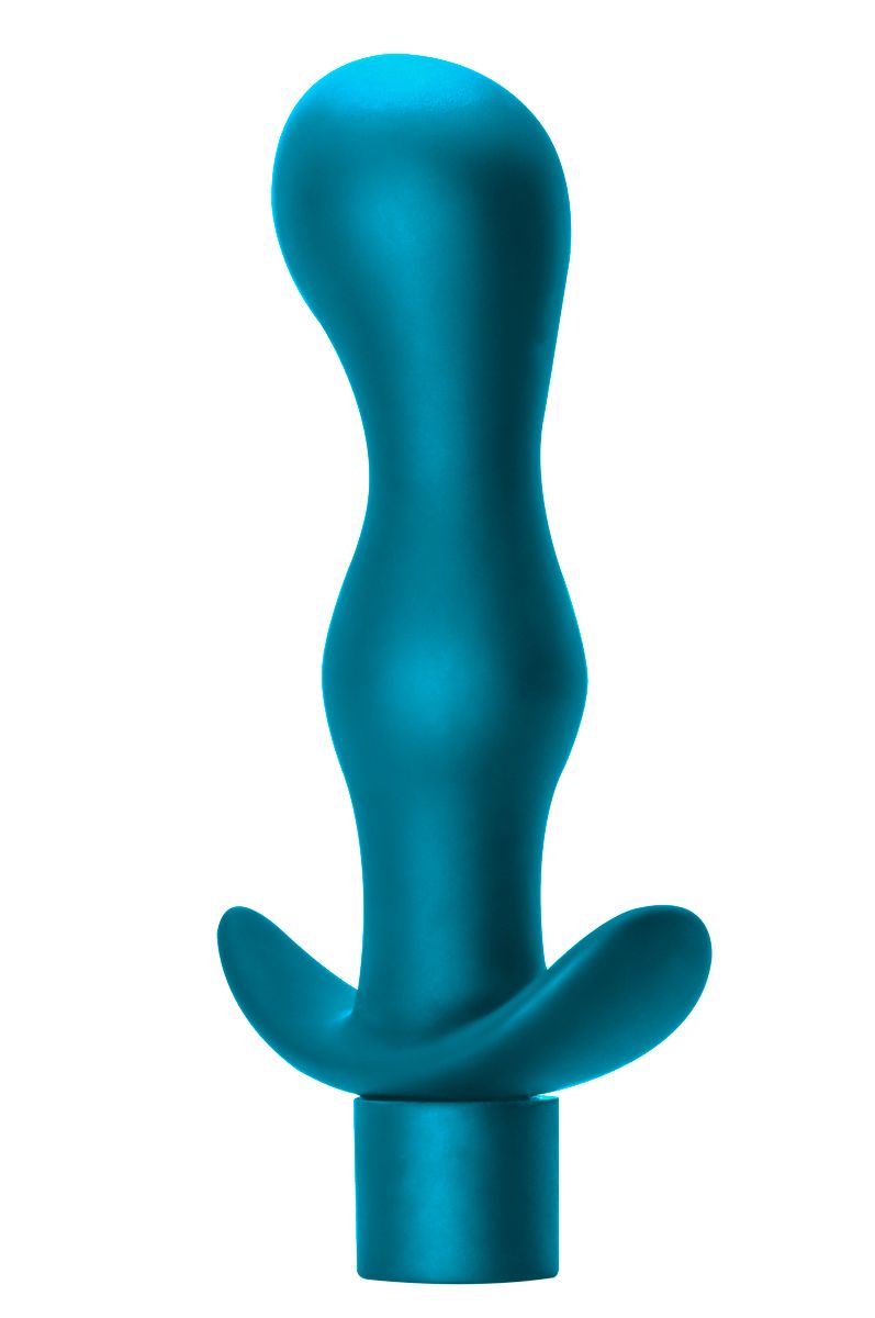 Бирюзовая фигурная анальная пробка с вибрацией Passion - 14 см.