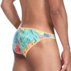 Бирюзовые трусы-слипы с гавайским принтом.