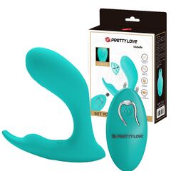 Бирюзовый стимулятор G-точки Idabelle. Имеет 12 режимов пульсации и пульт дистанционного управления.