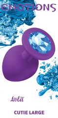 Большая фиолетовая анальная пробка Emotions Cutie Large с голубым кристаллом - 10 см.
