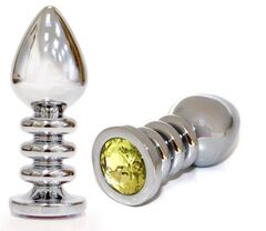 Большая серебристая анальная пробка с жёлтым кристаллом.