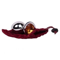 Гладкий большой плаг из отполированной до блеска стали с кристаллом сочного оранжевого цвета в основании. Металл - материал с большой теплопроводностью, сначала он будет прохладным, но быстро нагреется до температуры вашего тела. Стальные игрушки можно нагревать или охлаждать с помощью воды.