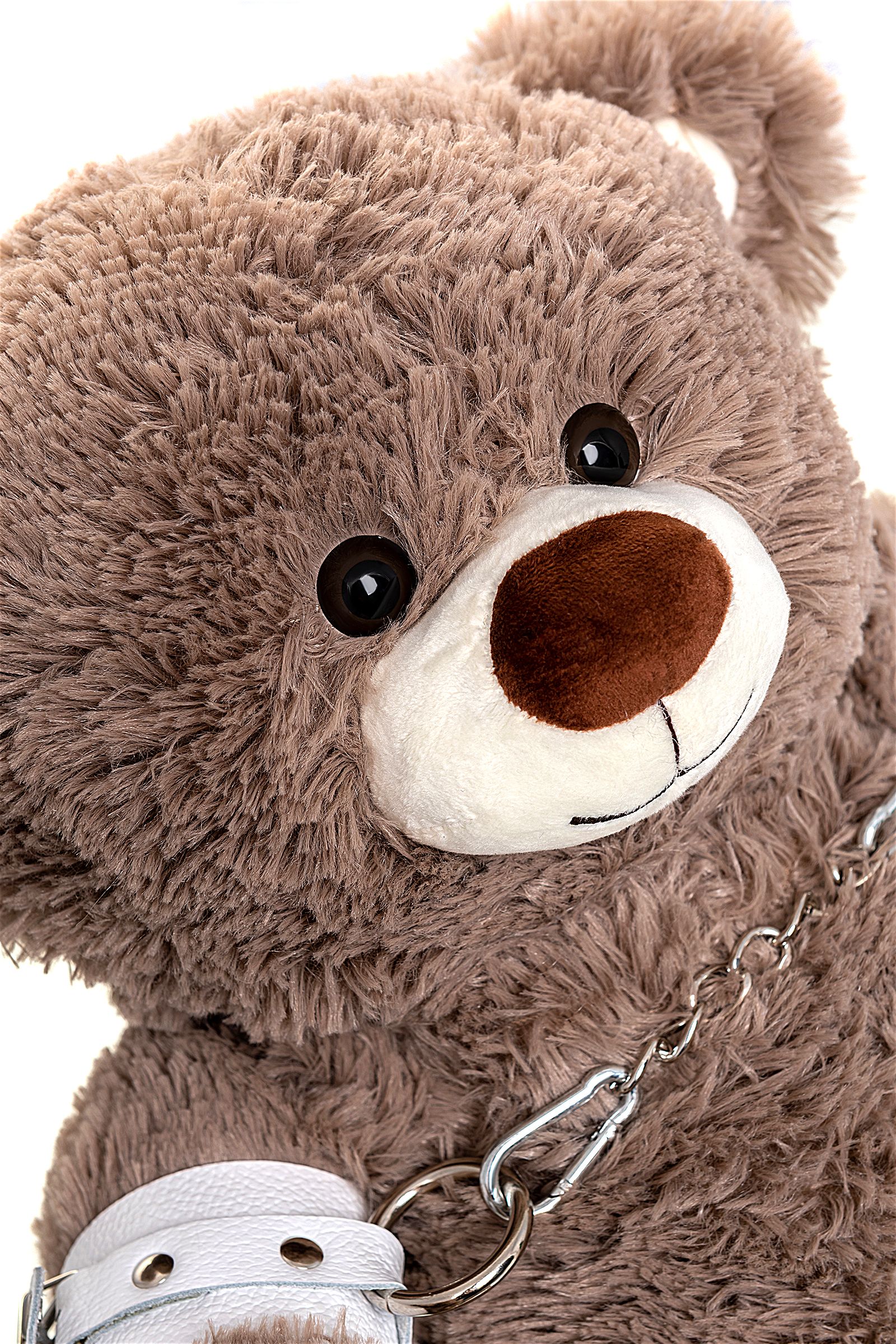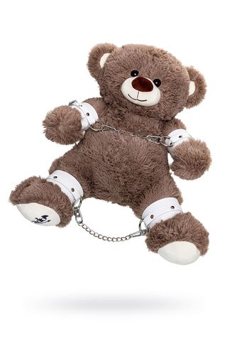 Бондажный набор: бурый мишка с белыми оковами и наручниками