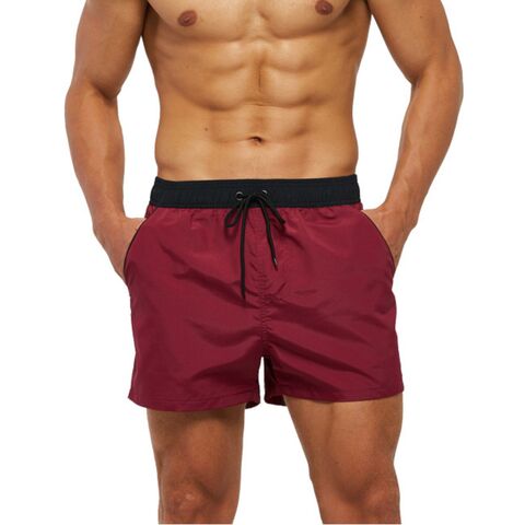 Бордовые пляжные мужские шорты. Подходят для плавания. Быстросохнущий материал.