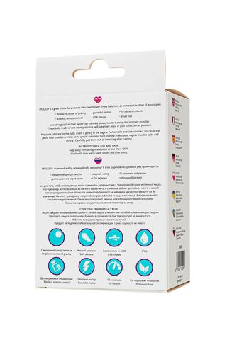 Смещенный центр тяжести верхнего шарика обеспечивает интенсивные тренировки ваших интимных мышц. Мощный мотор в нижнем шарике позволяет наслаждаться вибрацией высокой интенсивности. 10 режимов вибрации позволяют настроиться на нужный ритм и уровень удовольствия. Дистанционное управление дает возможность контролировать вибрацию, не прерывая свою тренировку. Небольшой размер делает тренажер Moussy компактным и удобным для использования в любой ситуации. USB зарядка обеспечивает удобство использования и экономит ваше время и деньги.