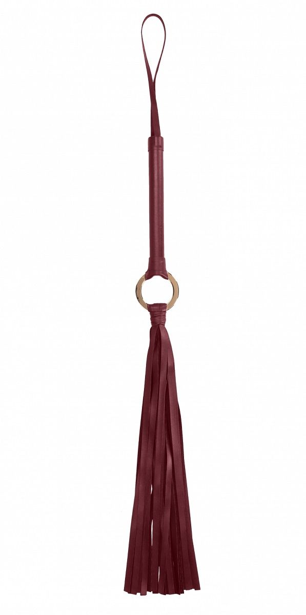 Хлыст Ouch Flogger – универсальный ударный девайс для эротических ролевых игр и практик БДСМ. Флогер относится к мягкому типу. Он состоит из прочной рукояти, множества «хвостов», нарезанных из тонких полос, соединенных между собой оригинальным золотым кольцом и петли для фиксации изделия на запястье (темляк).