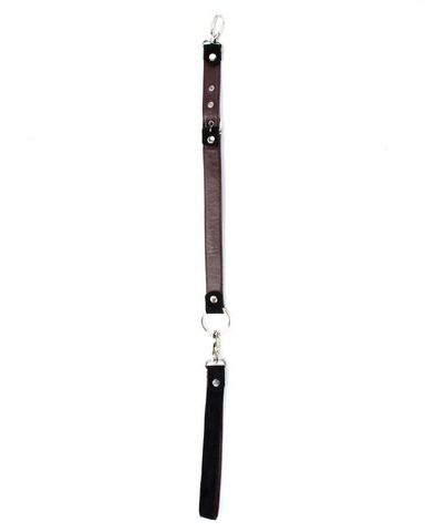 Поводок с одной стороны выполнен из натуральной кожи бордового цвета, с другой стороны из черной замши. На одном конце имеется петелька для руки. Длина изделия регулируется металлической пряжкой и ремешком от 60 до 70 см, карабины и кольцо надежно фиксируют в подчинении, обеспечивая погружение в сладкий мир ограничений. Ширина ремешка - 2 см.