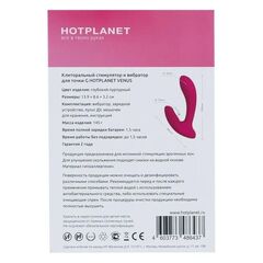 Hot Planet Venus позволяет получить оргазм в любом месте и в любое время: благодаря своему небольшому размеру, игрушка может быть использована когда и где угодно. Изогнутая форма Venus идеально подходит для интенсивной внутренней стимуляции, а гибкость вагинального отростка позволяет подстраивать игрушку под индивидуальные особенности тела.
